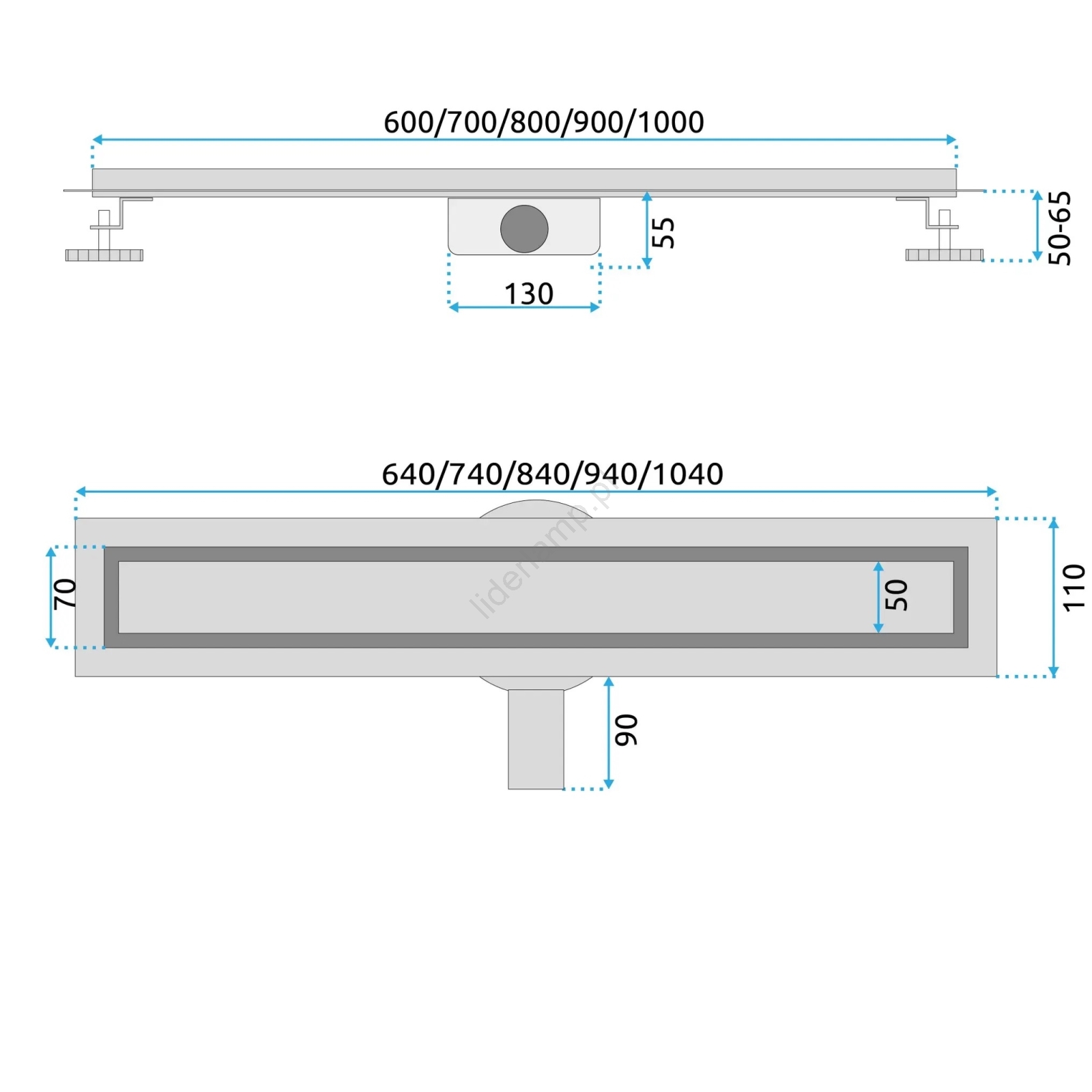 • Liniowy odpływ o długości 60 cm w złotym dekorze.
