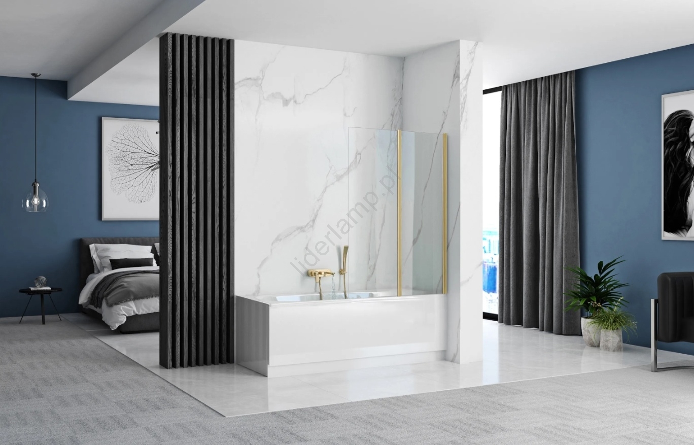 ReviewsWidget_ReviewsAboutUs REA-K9777 - Składany parawan wannowy AGAT 140x100 cm, szczotkowane złoto/szkło przezroczyste | Lider