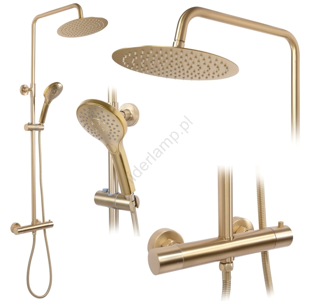 REA-P6602 - Zestaw prysznicowy z baterią termostatyczną VINCENT, szczotkowane złoto