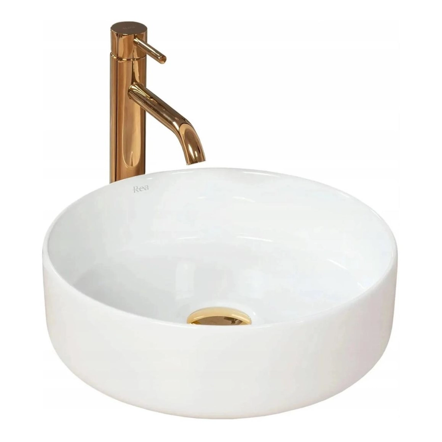 • REA-U6630 - Umywalka nablatowa SAMI Ø 36 cm ceramika/biała/szczotkowane złoto