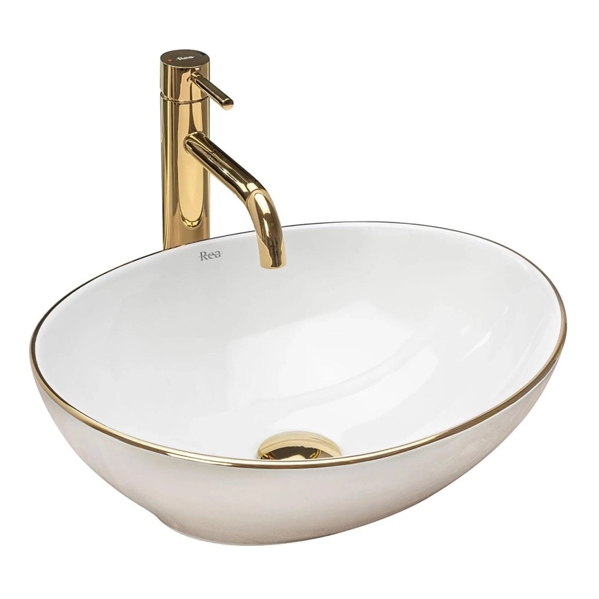 REA-U3287 - Umywalka nablatowa SOFIA 34,5x41 cm ceramika/błyszcząca biała/złota