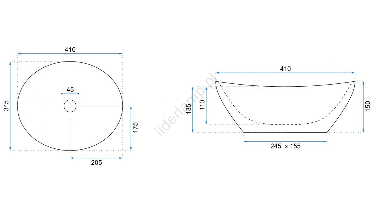 • REA-U0133 - Umywalka nablatowa SOFIA 34,5x41 cm ceramika/biały połysk