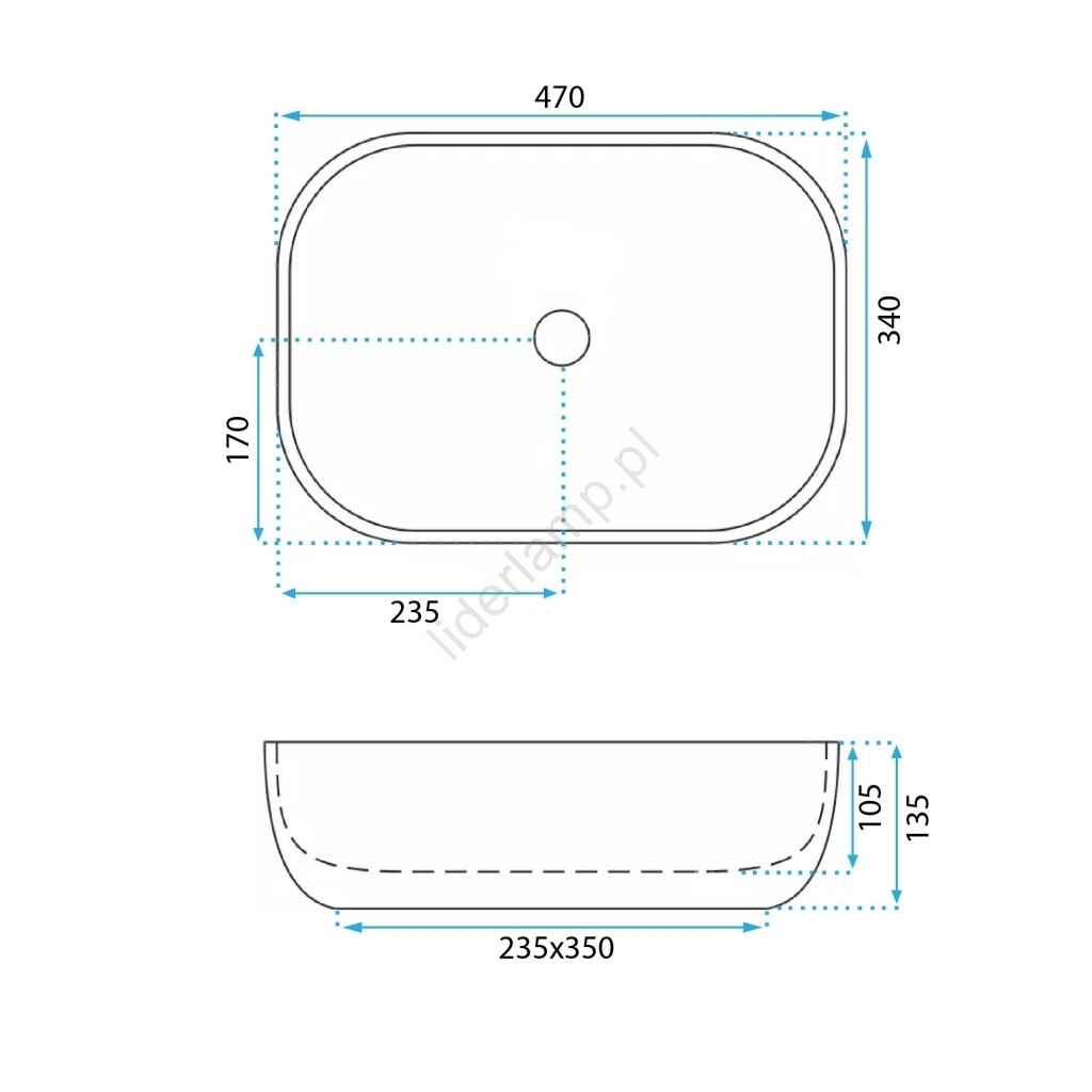 • REA-U3323 - Umywalka nablatowa BELINDA 33,5x46,5 cm ceramika/imitacja kamienia