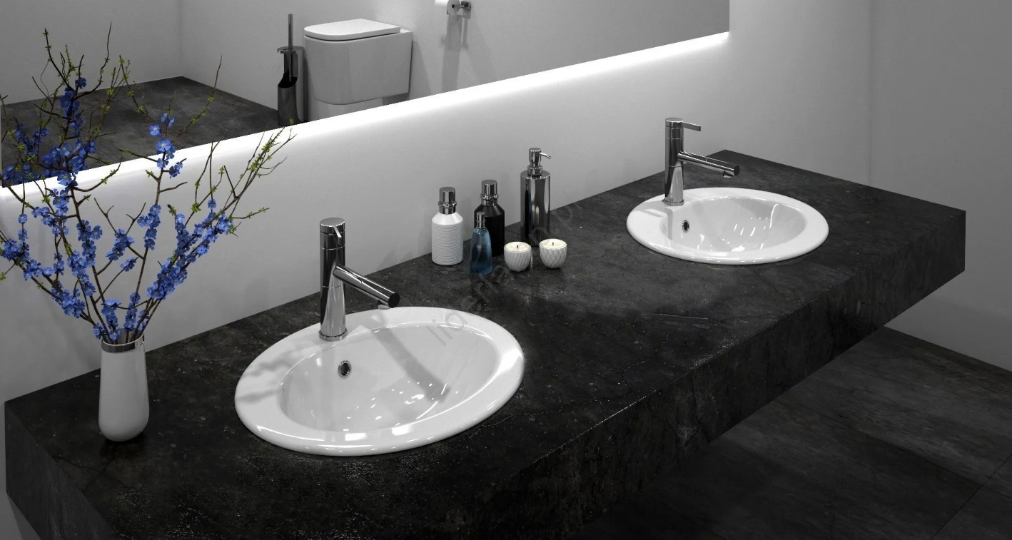 • Nowoczesna i elegancka umywalka wpuszczana z przelewem.
