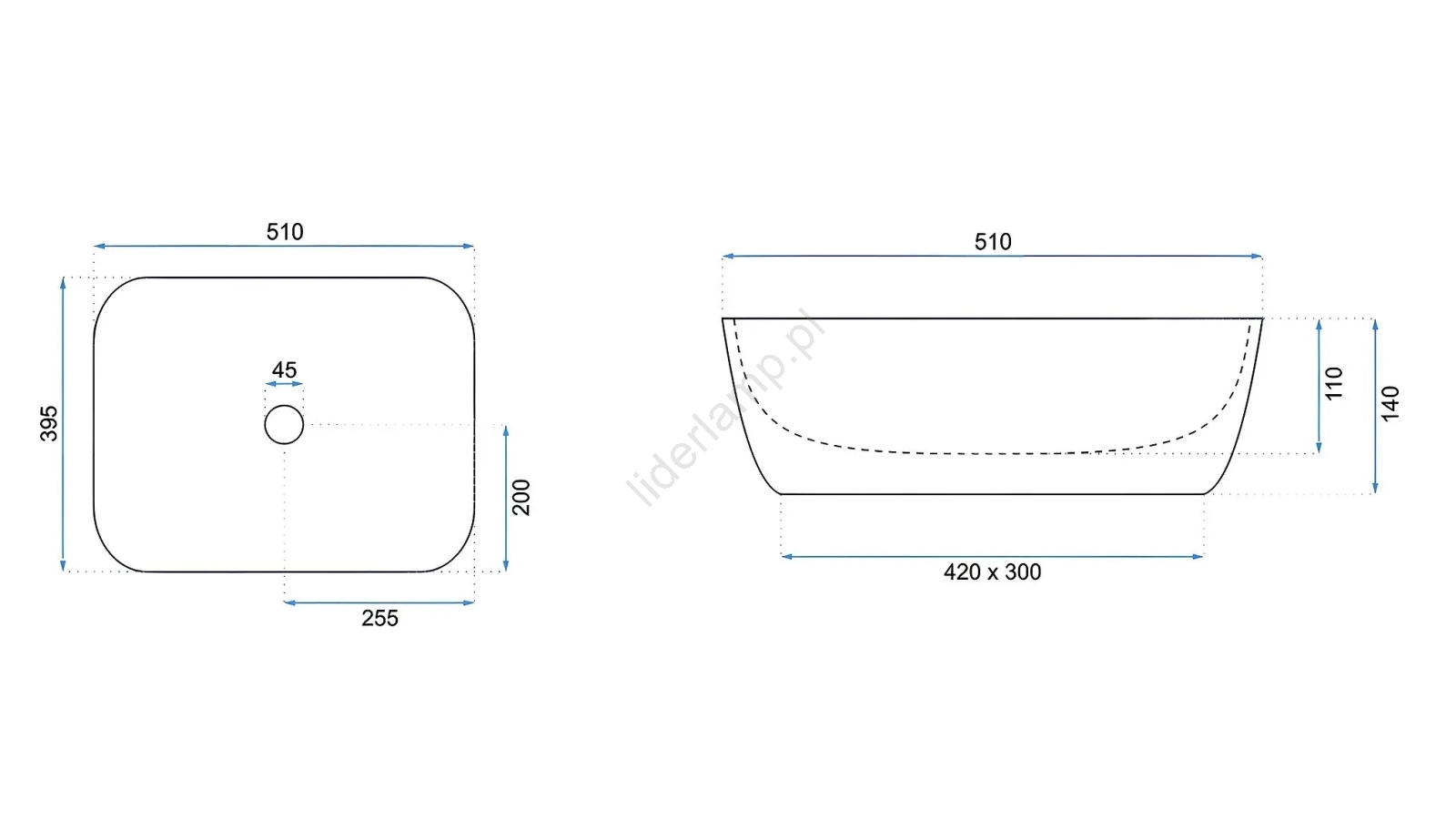 • Nowoczesna i elegancka umywalka bez przelewu.