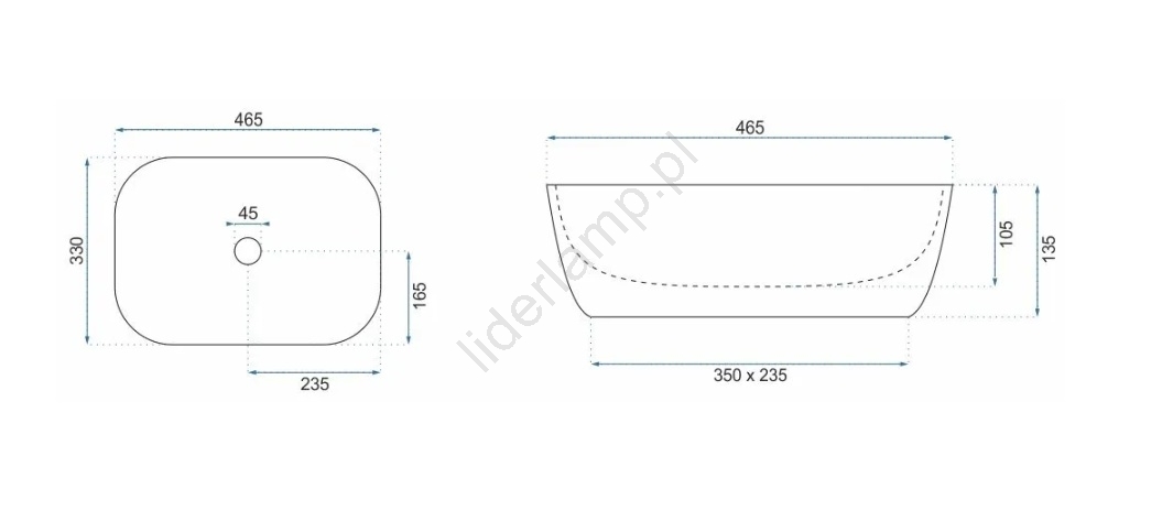 • REA-U6521 - Umywalka nablatowa BELINDA SLIM 33x46,5 cm ceramika/biały połysk
