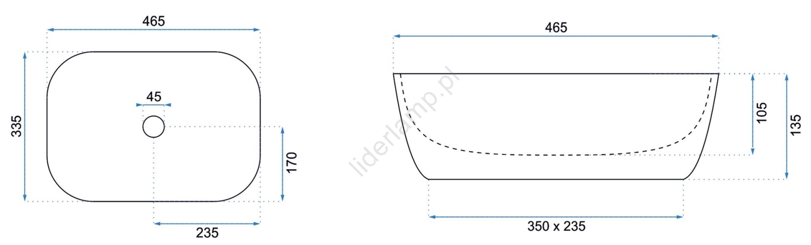 • REA-U6521 - Umywalka nablatowa BELINDA SLIM 33x46,5 cm ceramika/biały połysk