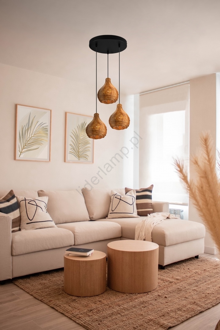 Reality - Lampa wisząca na lince SPROUT 3xE14/40W/230V brązowa/rattan charakteryzuje się ładnym i funkcjonalnym designem.  Do lampy pasuje żarówka z trzonkiem E14. Tutaj kupisz inne żarówki w korzystnych cenach. Będziesz mieć ciekawy dodatek do swojego domu.
