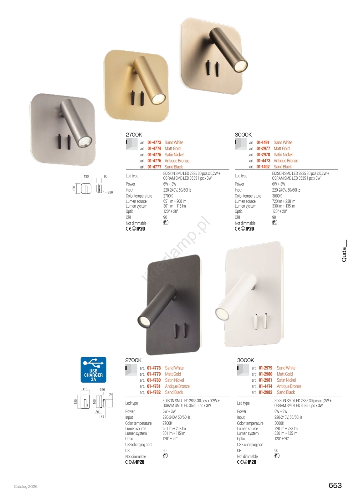 • Redo 01-4473 - Kinkiet LED QUDA LED/6W/230V + LED/3W CRI 90 brązowy