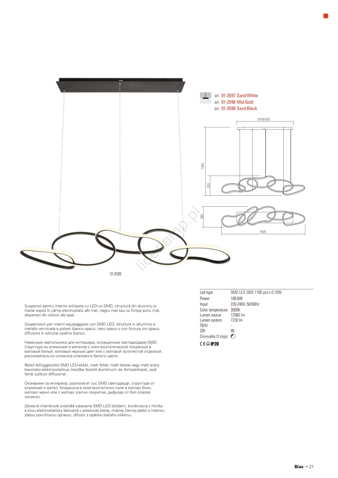 • Redo 01-2597 - LED ściemnialny żyrandol na lince BIAS LED/108,6W/230V 3000K CRI 90 biały