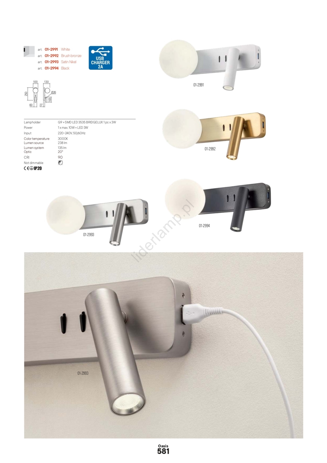 • Redo 01-2991 - Kinkiet LED OASIS LED/3W/230V + 1xG9/10W USB CRI 90 biały