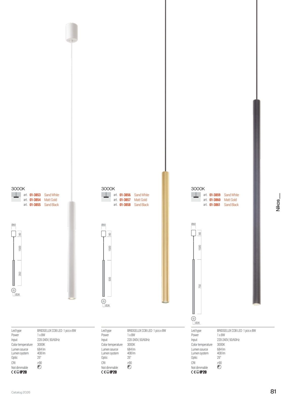 • Redo 01-3856 - Żyrandol LED wiszący na przewodzie NIKOS LED/8W/230V 3000K CRI 90 śr. 6 cm biały