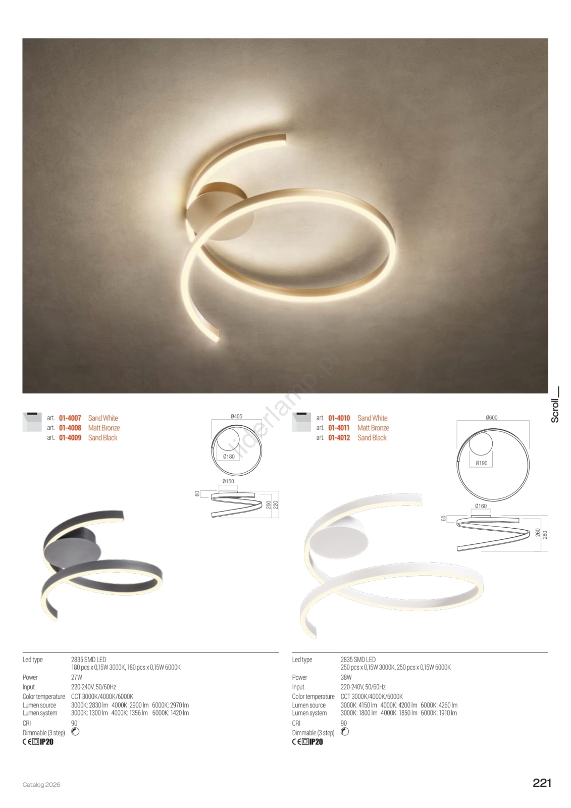 • Redo 01-4010 - LED ściemnialna oprawa sufitowa SCROLL LED/38W/230V 3000K/4000K/6000K CRI 90 śr. 60 cm biała