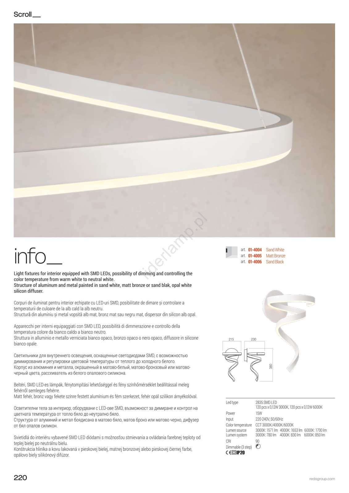 • Redo 01-4013 - LED Ściemnialny żyrandol na lince SCROLL LED/38W/230V 3000K/4000K/6000K CRI 90 śr. 60 cm biały