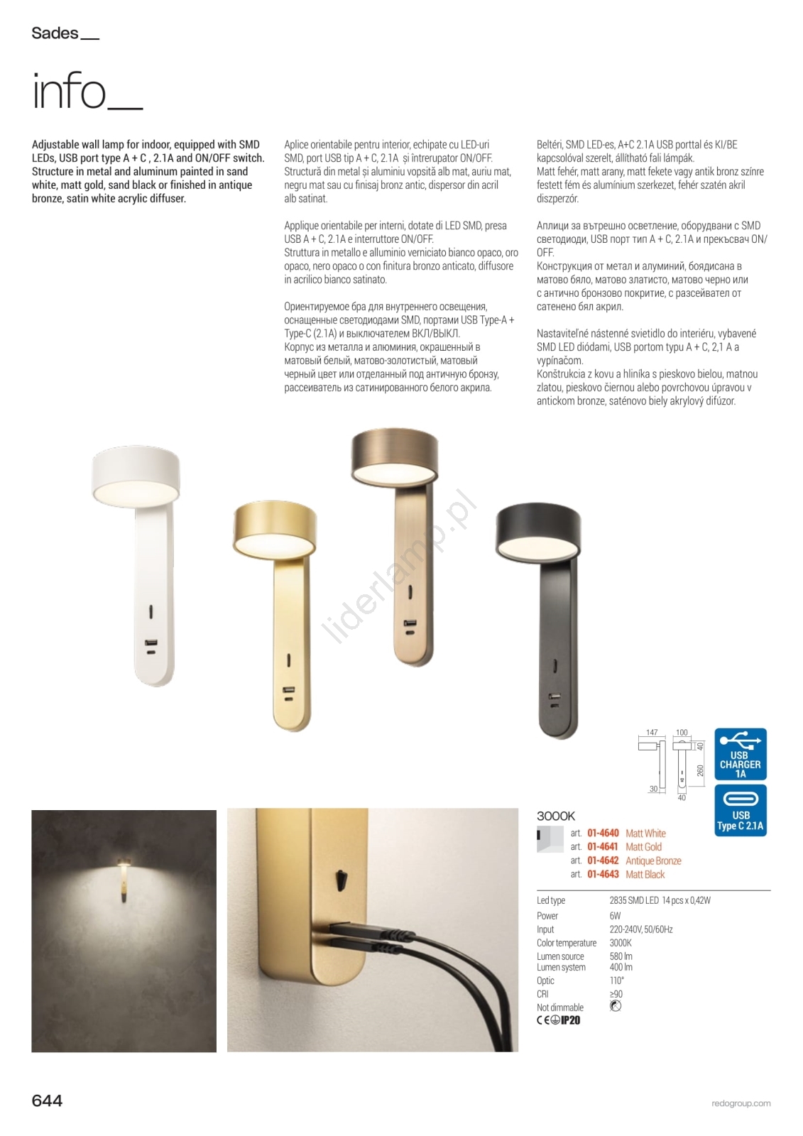 ReviewsWidget_ReviewsAboutUs Redo 01-4643 - Kinkiet LED SADES, 6W/230V, CRI 90, USB, czarny | Liderlamp.pl