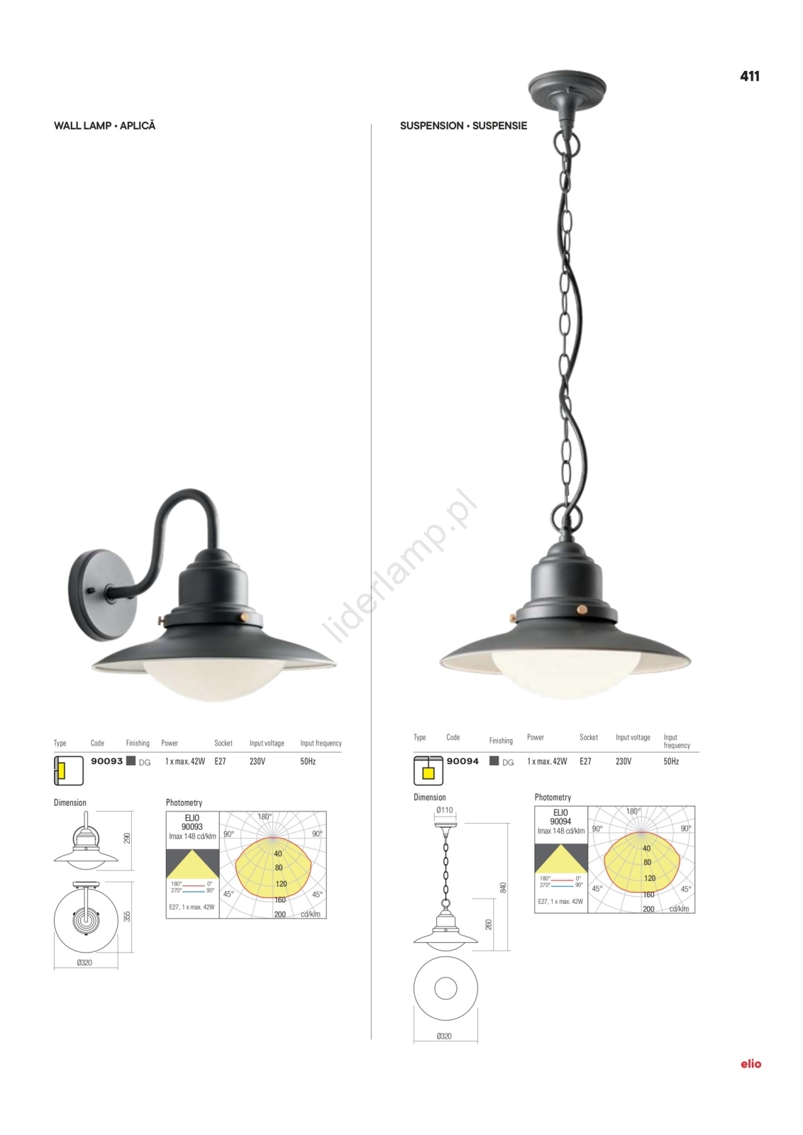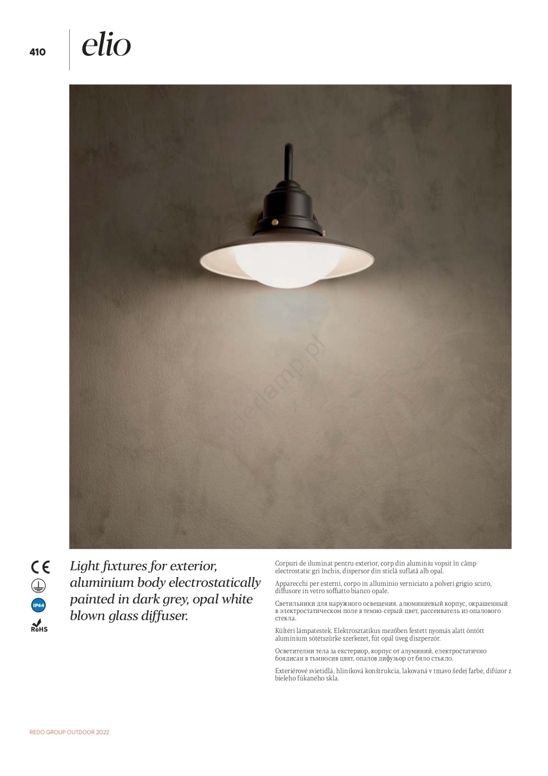 Redo 90093 - Zewnętrzny kinkiet ELIO 1xE27/42W/230V IP44 charakteryzuje się ładnym i funkcjonalnym designem.  Do lampy pasuje żarówka z trzonkiem E27. Tutaj kupisz inne żarówki w korzystnych cenach. Będziesz mieć ciekawy dodatek do swojego domu.