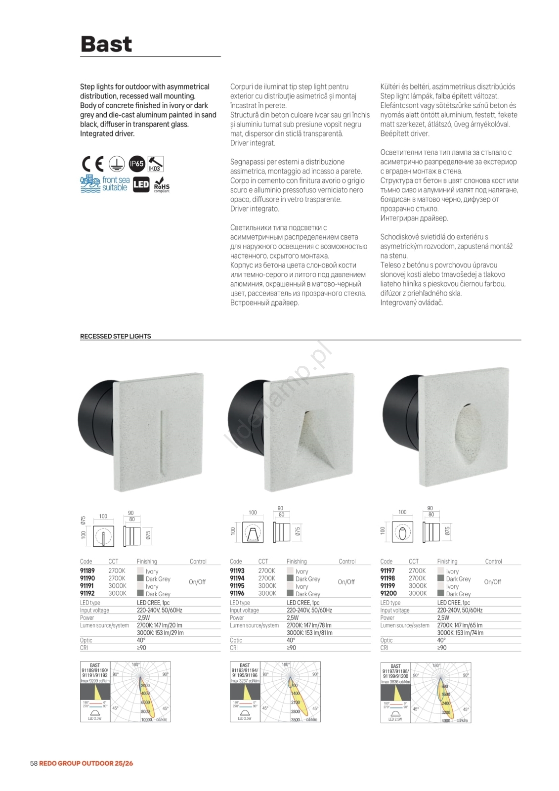 • Redo 91195 - Zewnętrzna oprawa orientacyjna BAST LED/2,5W/230V 3000K CRI 90 IP65 szara