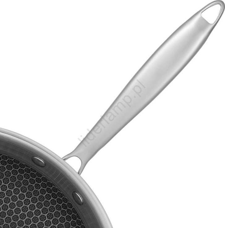 • Wewnętrzną powierzchnię stanowi skuteczna nieprzywierająca powłoka z unikalnym wzorem plastra miodu, która minimalizuje przywieranie potraw i jednocześnie znacząco ułatwia czyszczenie.