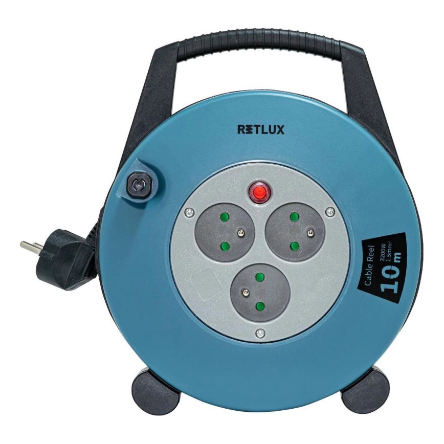 Retlux - Przedłużacz na bębnie 3 gniazda typ E 10 m niebieski/czarny