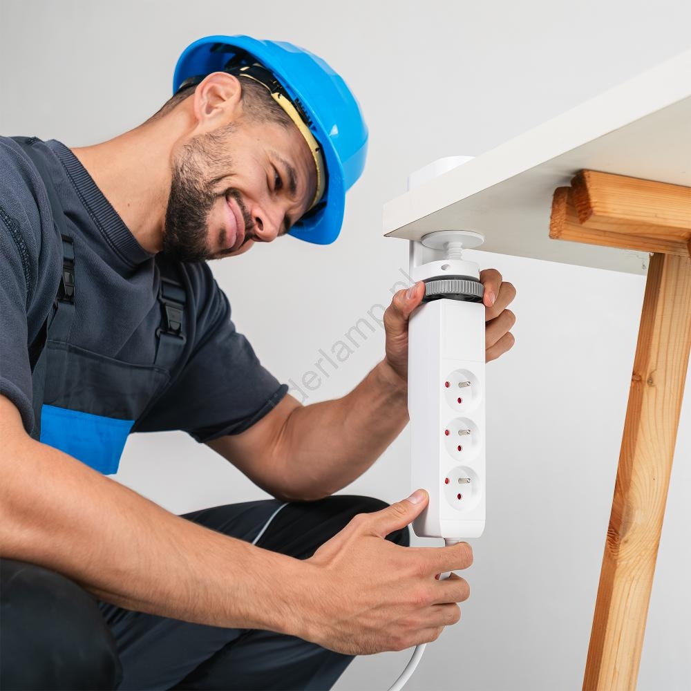 Przedłużacz z uchwytem do biurka 3 gniazda Typ E + 2xUSB-A + 1xUSB-C 1,5 m biały