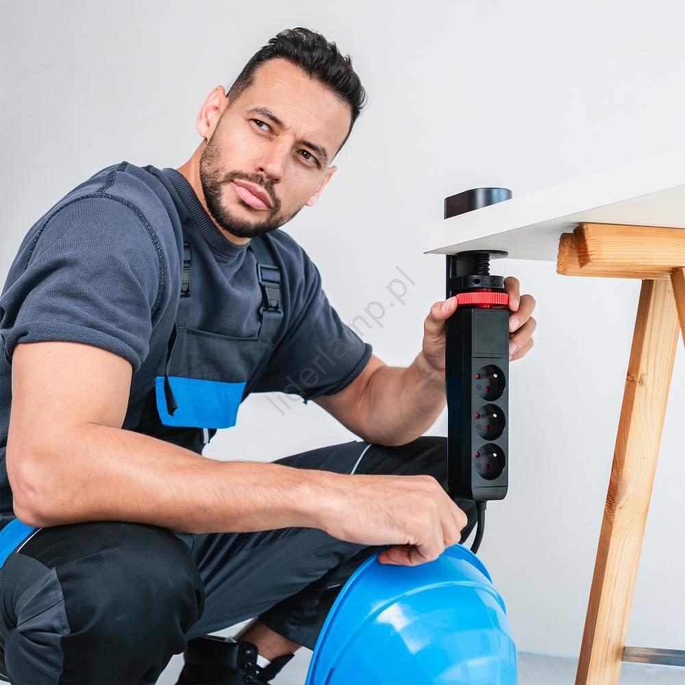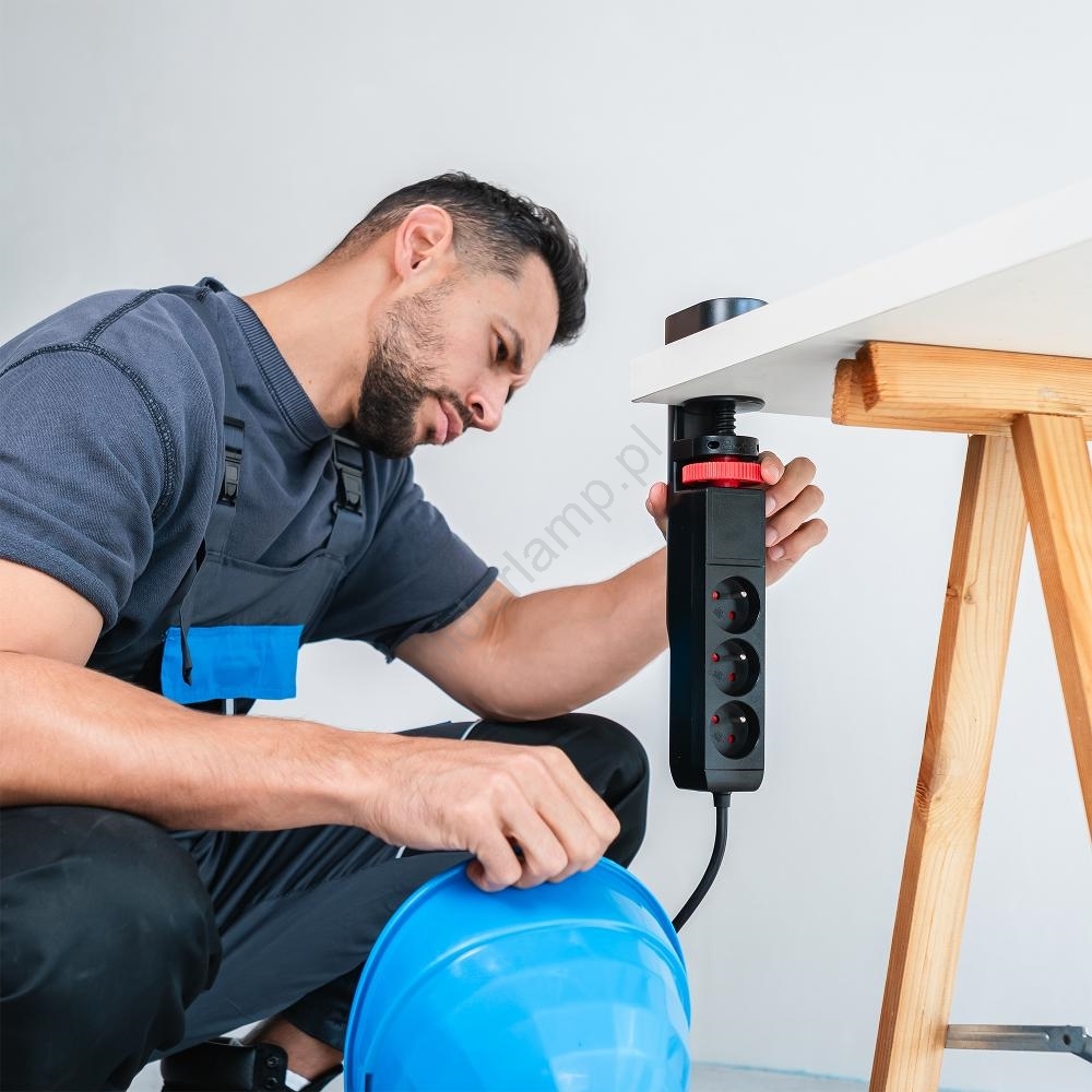 Listwa zasilająca z uchwytem do biurka 3 gniazda Typ E + 2xUSB-A + 1xUSB-C 1,5m czarna