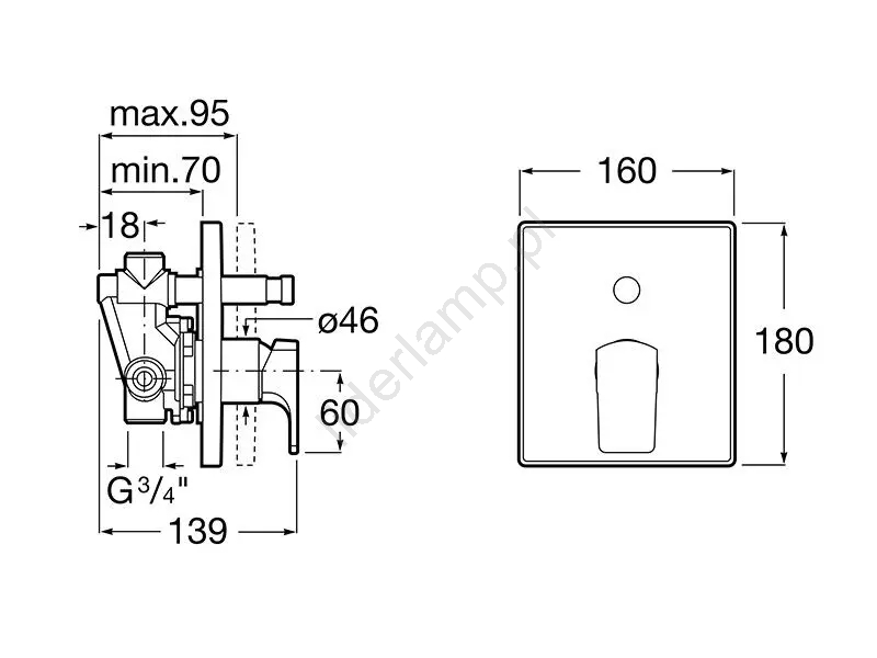 Roca A5A0B01C00 - Bateria prysznicowa podtynkowa L90, chrom połysk