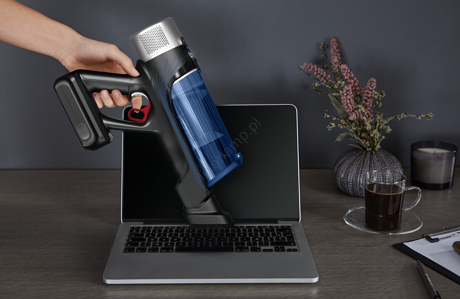 • Bardzo wydajny bezprzewodowy odkurzacz pionowy zaprojektowany do kompleksowego sprzątania: suchych i mokrych powierzchni dzięki technologii „Aqua“ – odkurzanie i mopowanie jednocześnie.