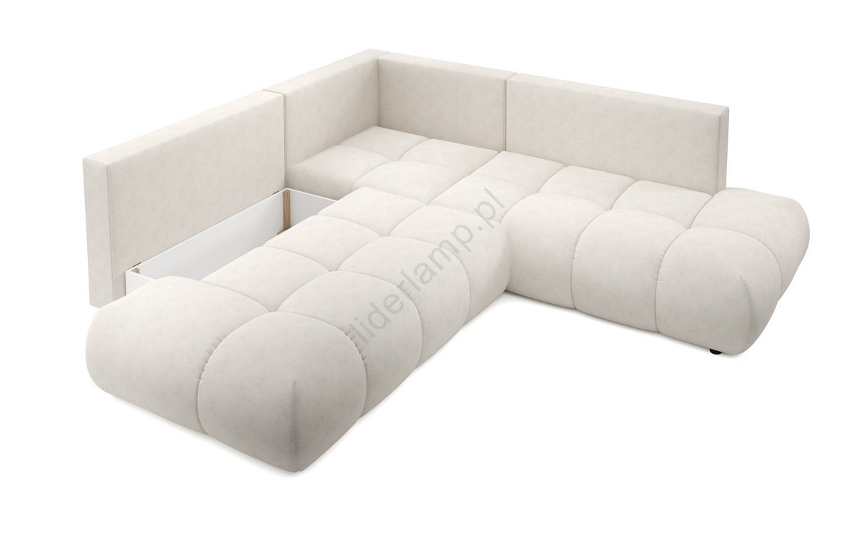 • Rozkładany narożnik tapicerowany z pojemnikiem w układzie L ALMADA lewy beżowy