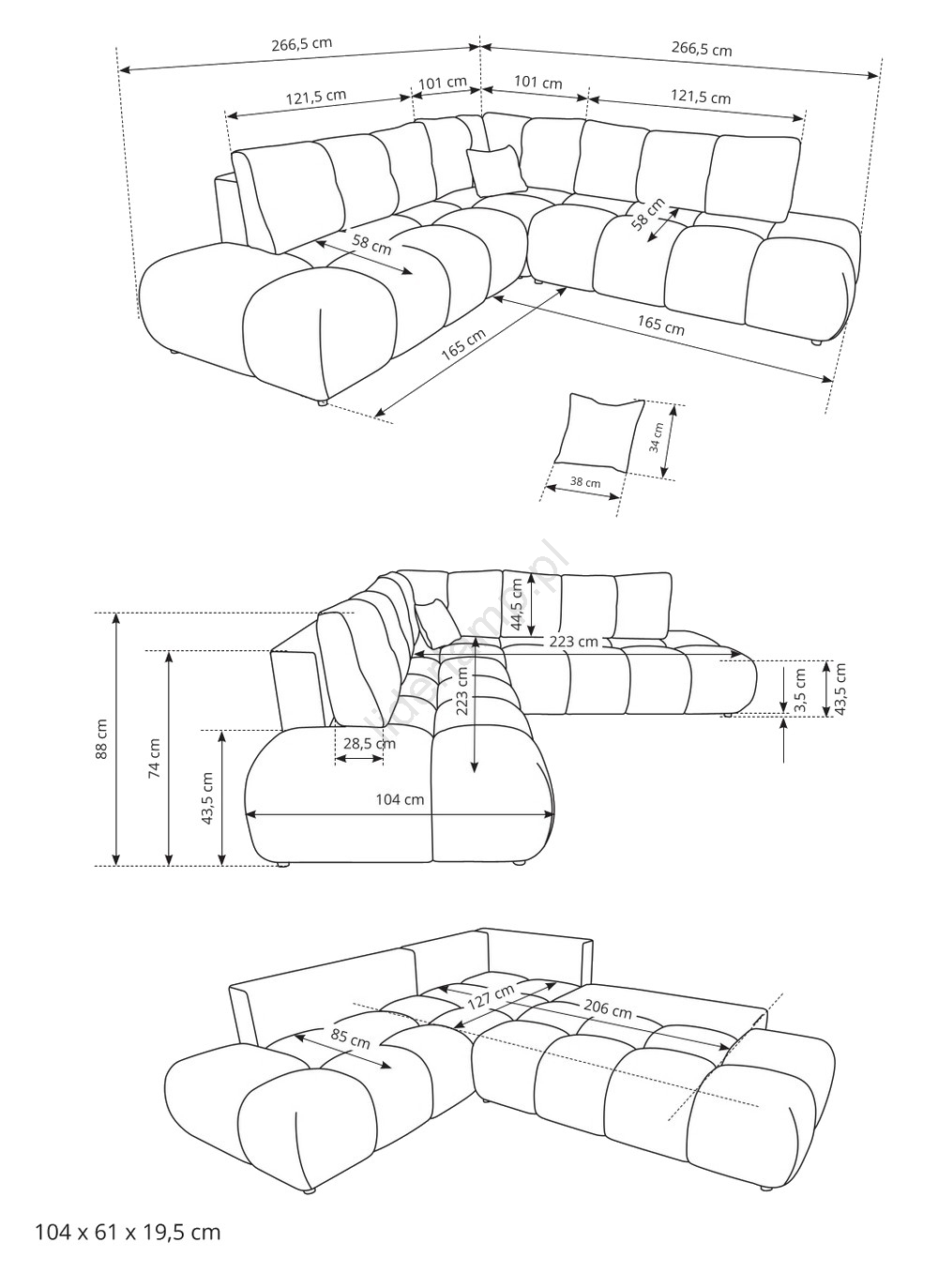 • Tył sofy zdobi wysokiej jakości tapicerka, co pozwala na ustawienie narożnika wolnostojąco.