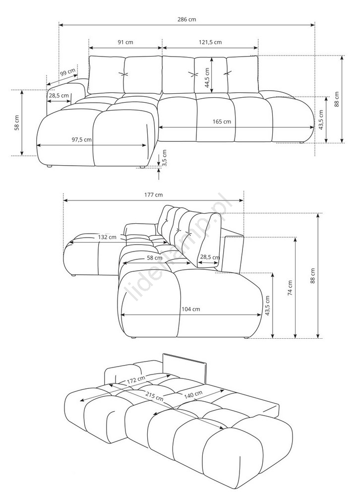 • Narożnik posiada przestronny schowek do przechowywania pościeli i innych rzeczy sezonowych.