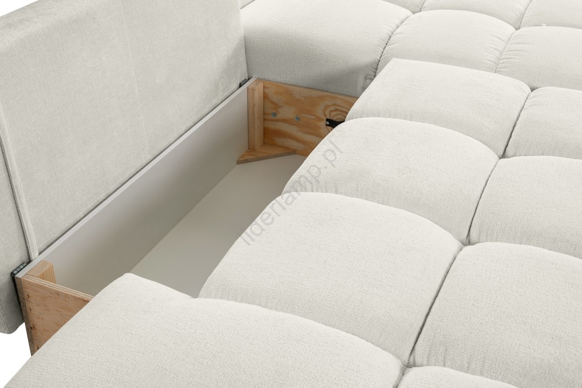 • Rozkładany narożnik tapicerowany z pojemnikiem w układzie L ALMADA lewy jasnobeżowy