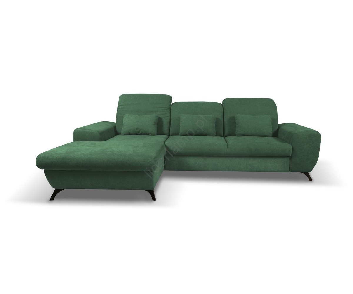 • Narożnik rozkładany tapicerowany ALTA w kształcie litery L, prawostronny, zielony, z pojemnikiem