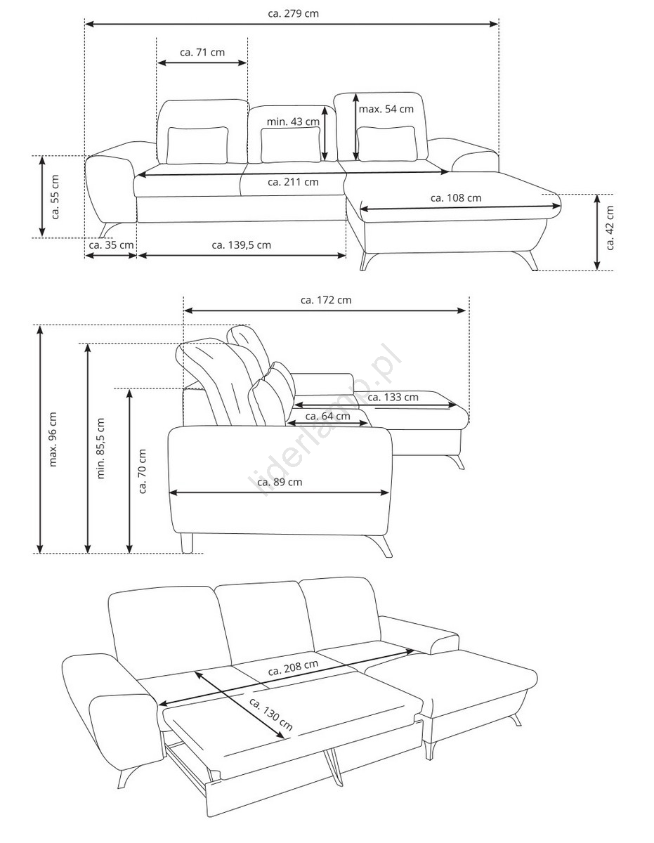 • Dzięki funkcji spania (typ delfin) łatwo przekształca się w wygodną przestrzeń do wypoczynku.