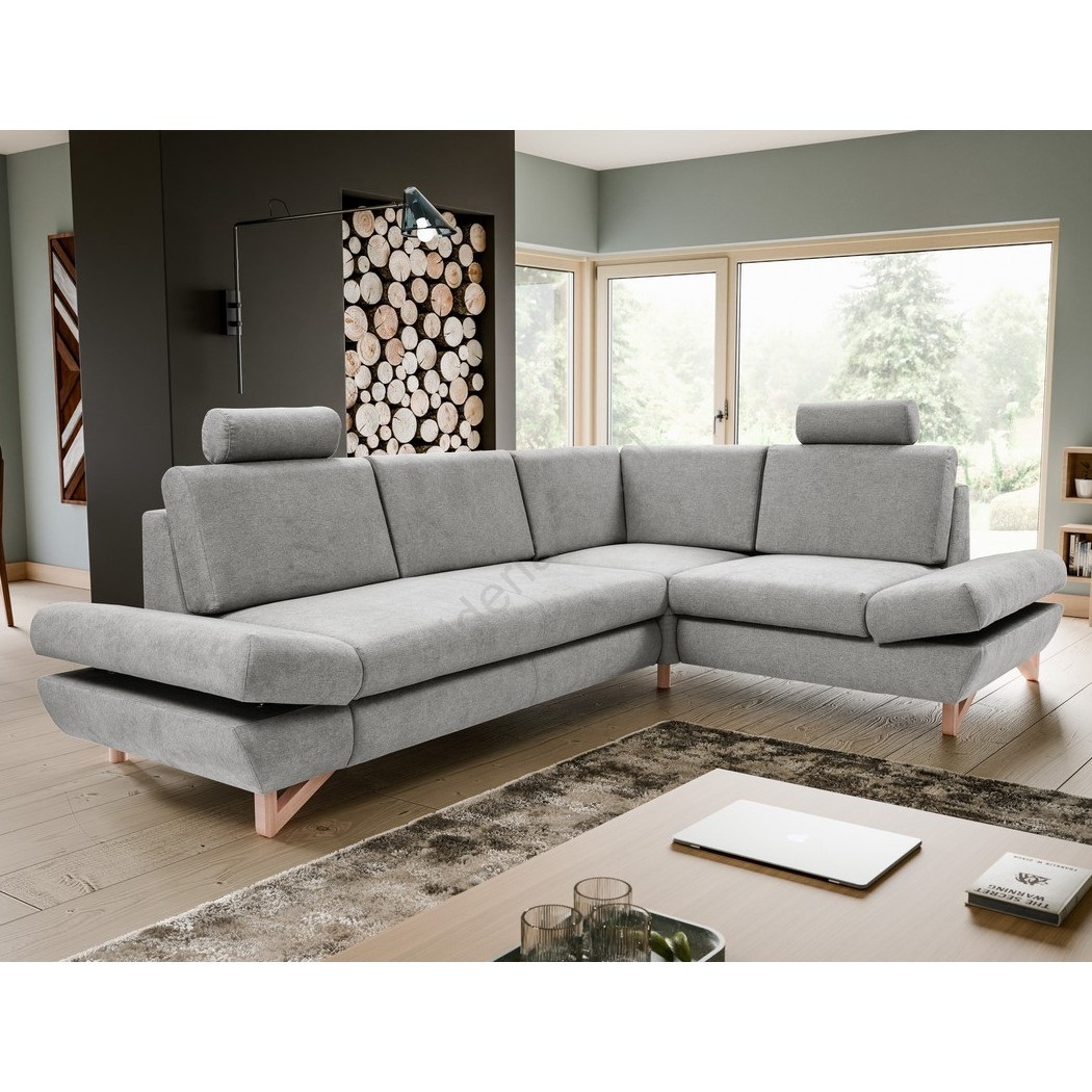 • Rozkładany narożnik tapicerowany z pojemnikiem AVESTA, układ L, prawy, szary