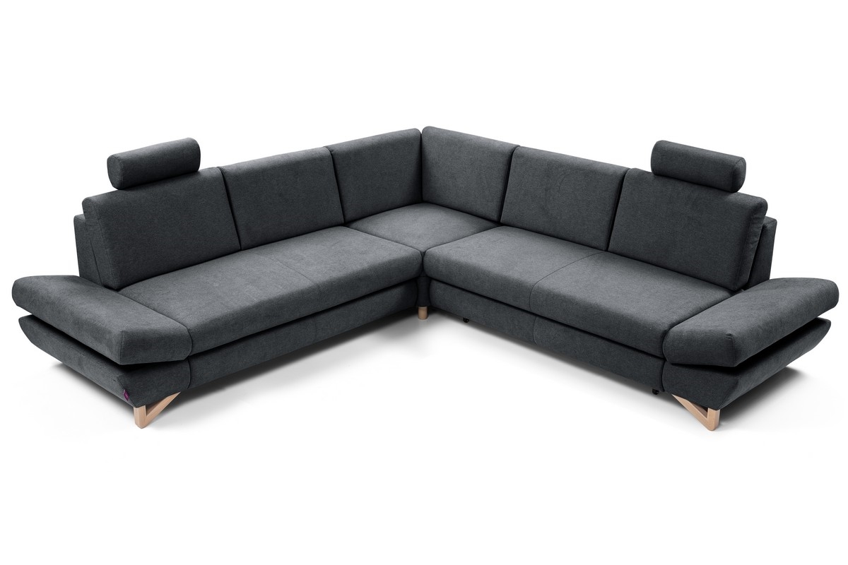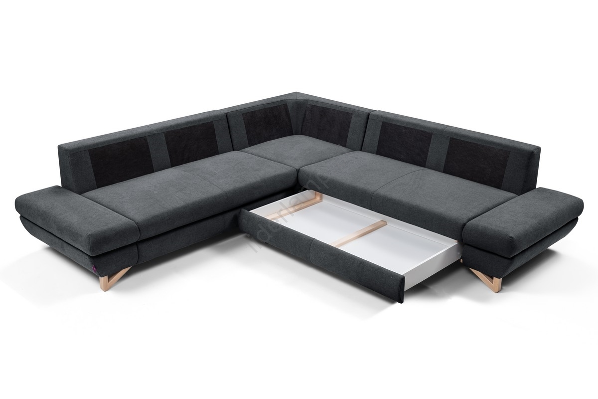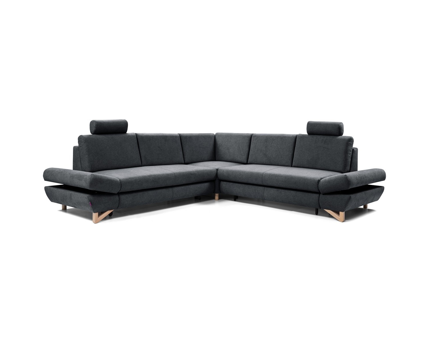 • Narożnik rozkładany tapicerowany AVESTA w kształcie L, prawostronny, antracyt, z pojemnikiem na pościel