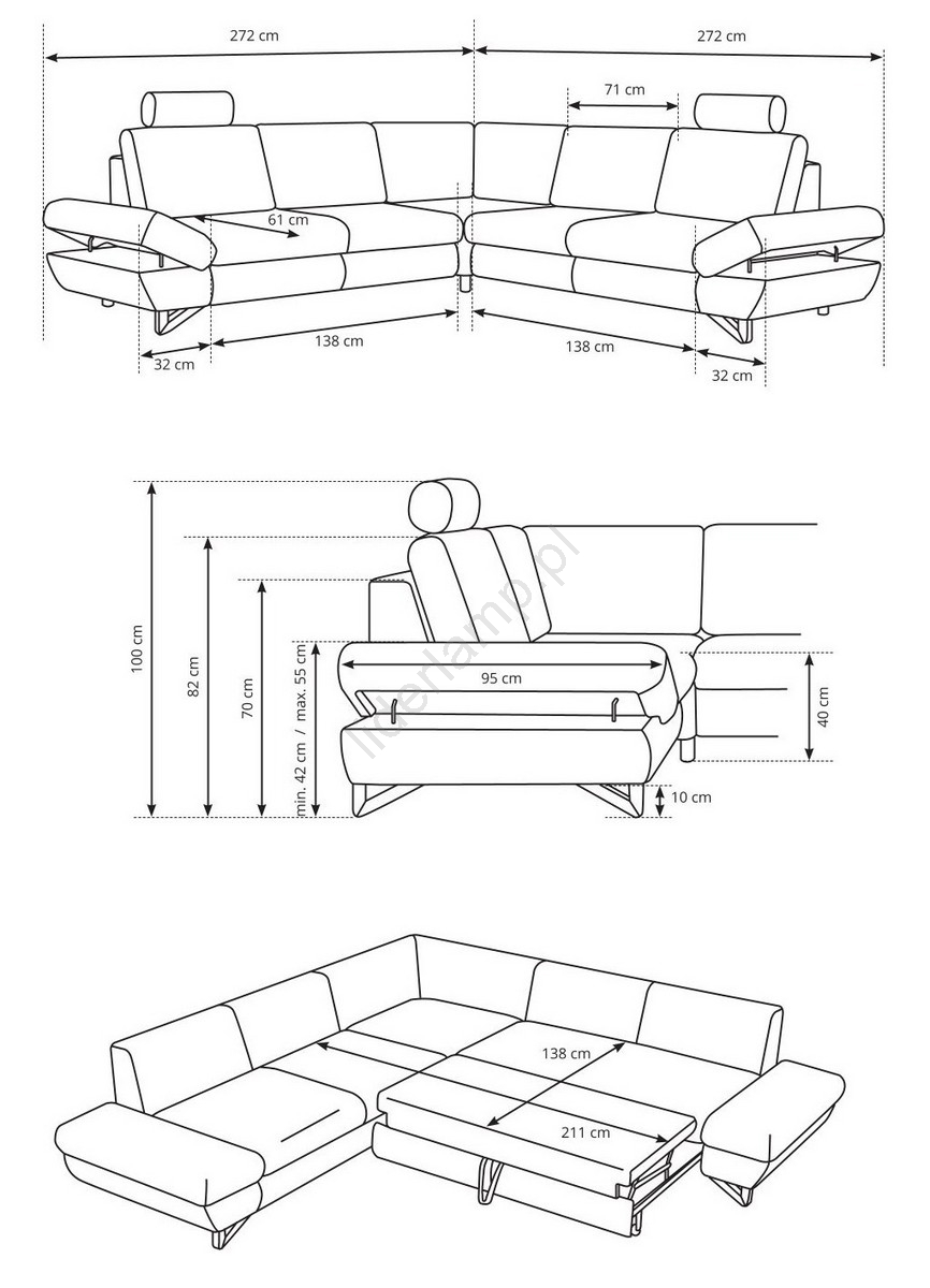 • Narożnik posiada przestronny schowek na pościel i inne sezonowe rzeczy.