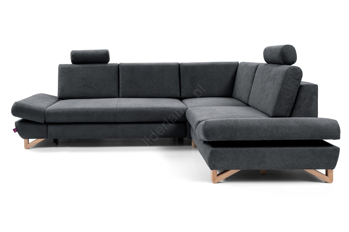 • Narożnik rozkładany tapicerowany AVESTA w kształcie L, prawostronny, antracyt, z pojemnikiem na pościel