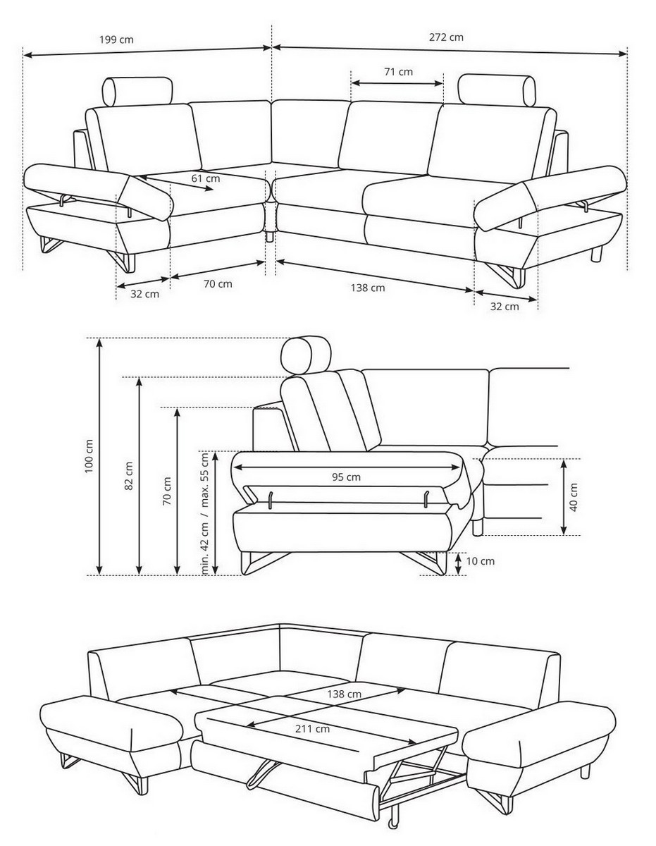 • Narożnik posiada przestronny schowek do przechowywania pościeli i innych sezonowych rzeczy.