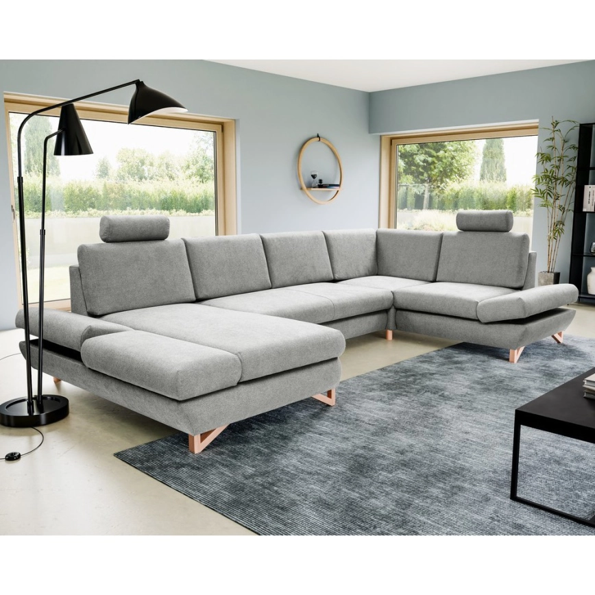 Rozkładany narożnik tapicerowany w kształcie U z pojemnikiem AVESTA szary