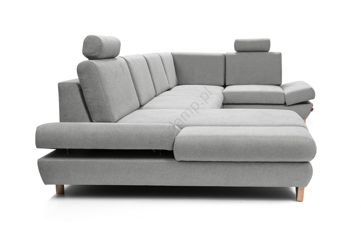 • Rozkładany narożnik tapicerowany w kształcie U z pojemnikiem AVESTA szary