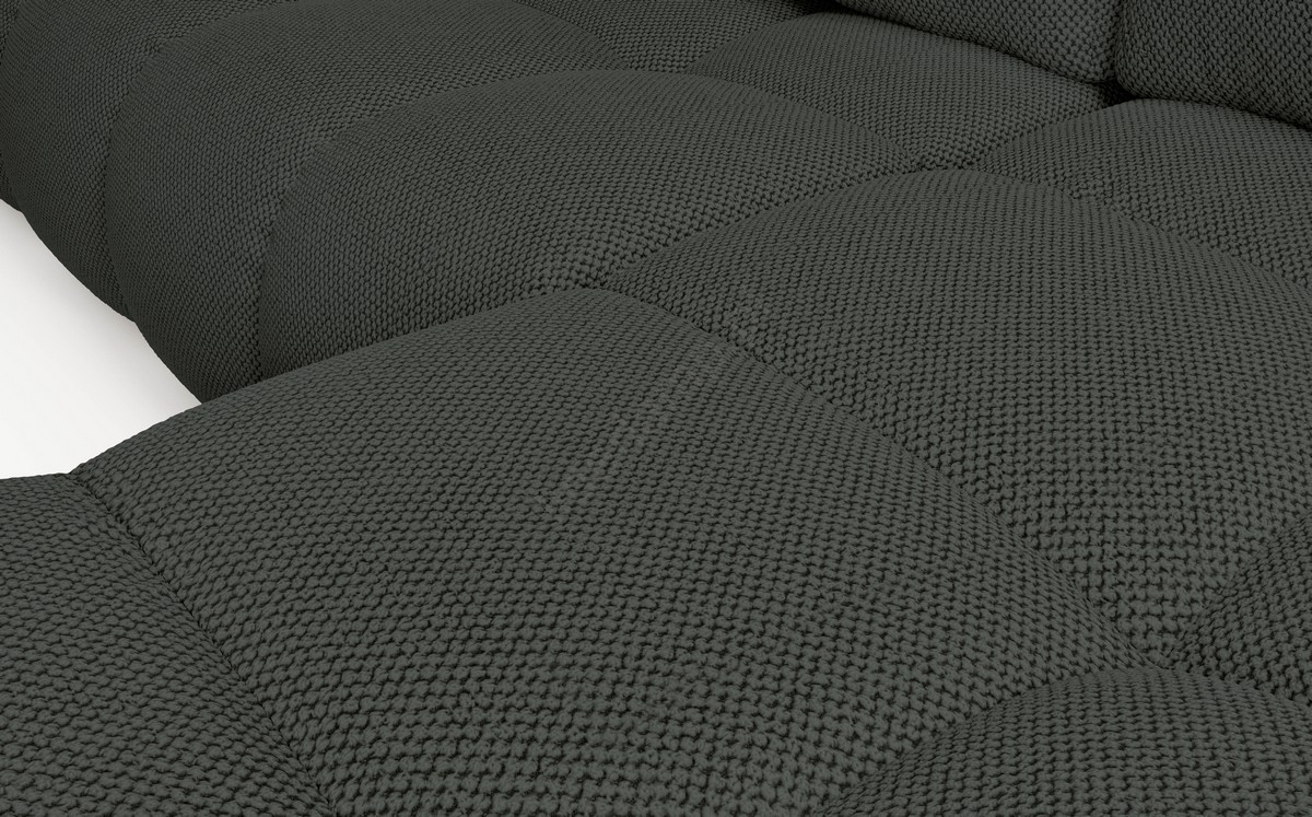 • Rozkładany narożnik tapicerowany w kształcie L ALMADA, prawostronny, antracyt, z pojemnikiem na pościel