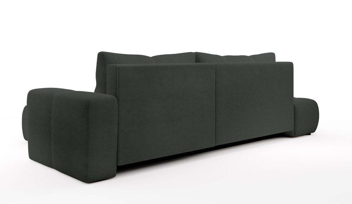 • Tylna część sofy wykończona jest wysokiej jakości tapicerką, co umożliwia ustawienie mebla swobodnie w przestrzeni.