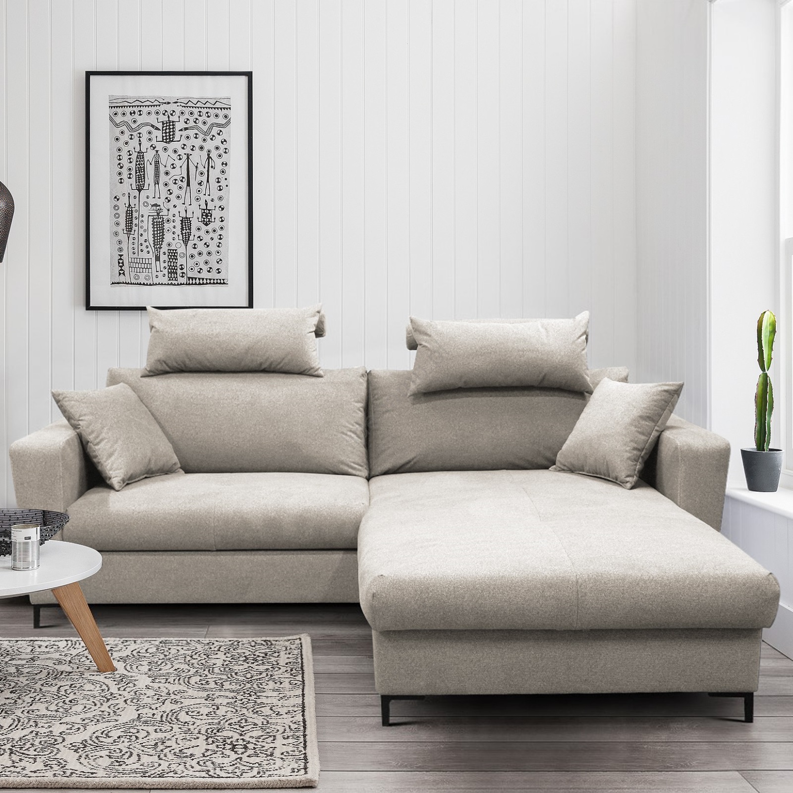 • Narożnik rozkładany HORTA w kształcie L, lewostronny, szary, z pojemnikiem