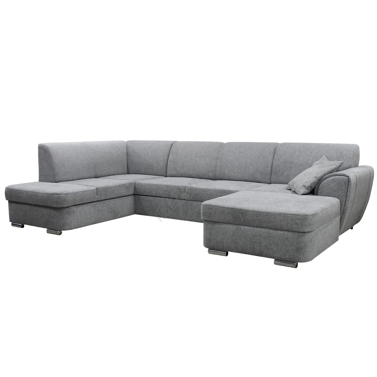• Narożnik rozkładany w kształcie U SERPA, prawostronny, szary, z pojemnikiem na pościel