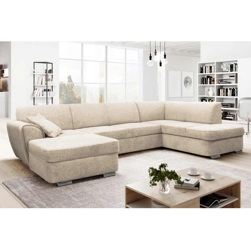 • Narożnik rozkładany w kształcie U z pojemnikiem na pościel SERPA — lewy, beżowy