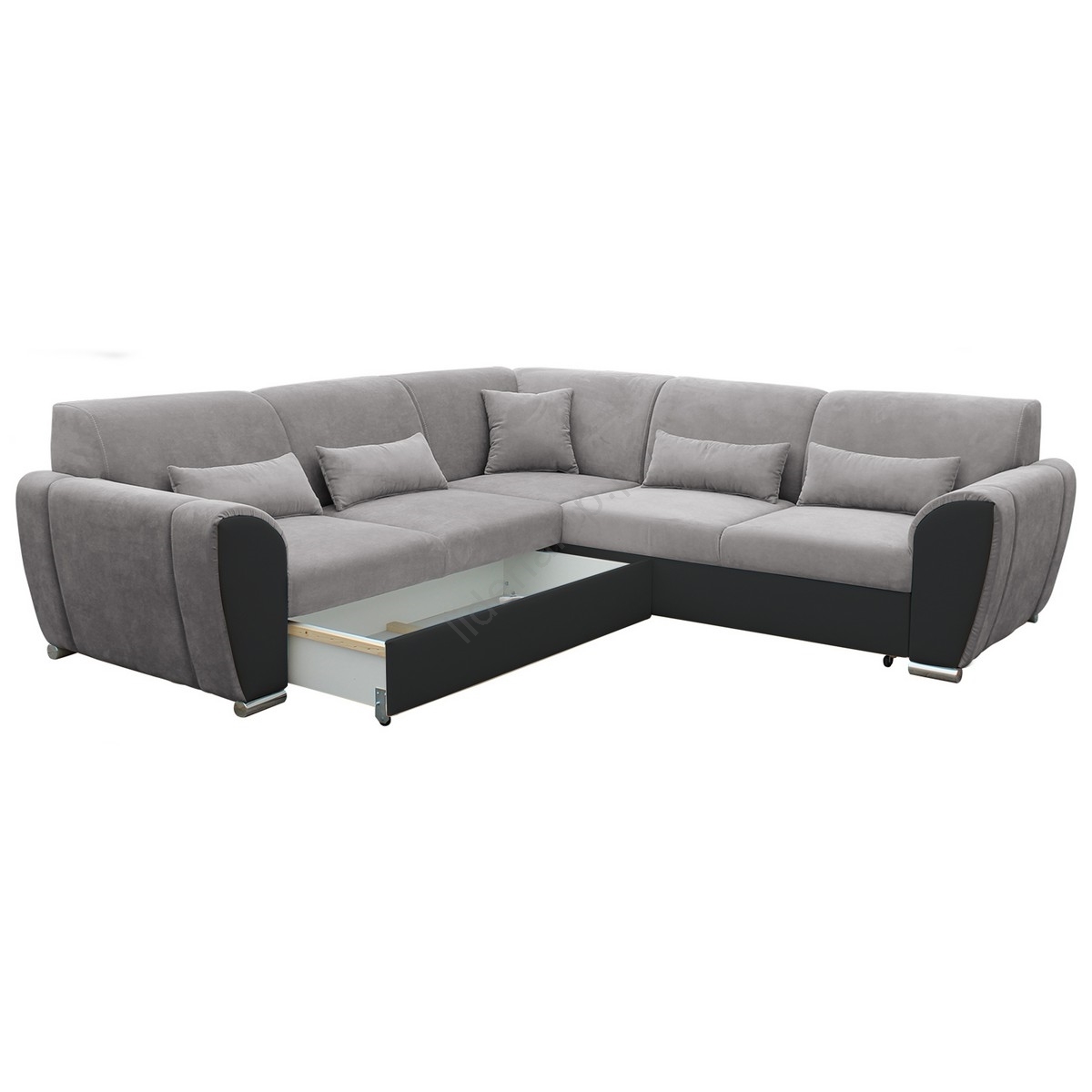 • Rozkładana narożna sofa VISEU w kształcie L z pojemnikiem, prawostronna, szaro-czarna