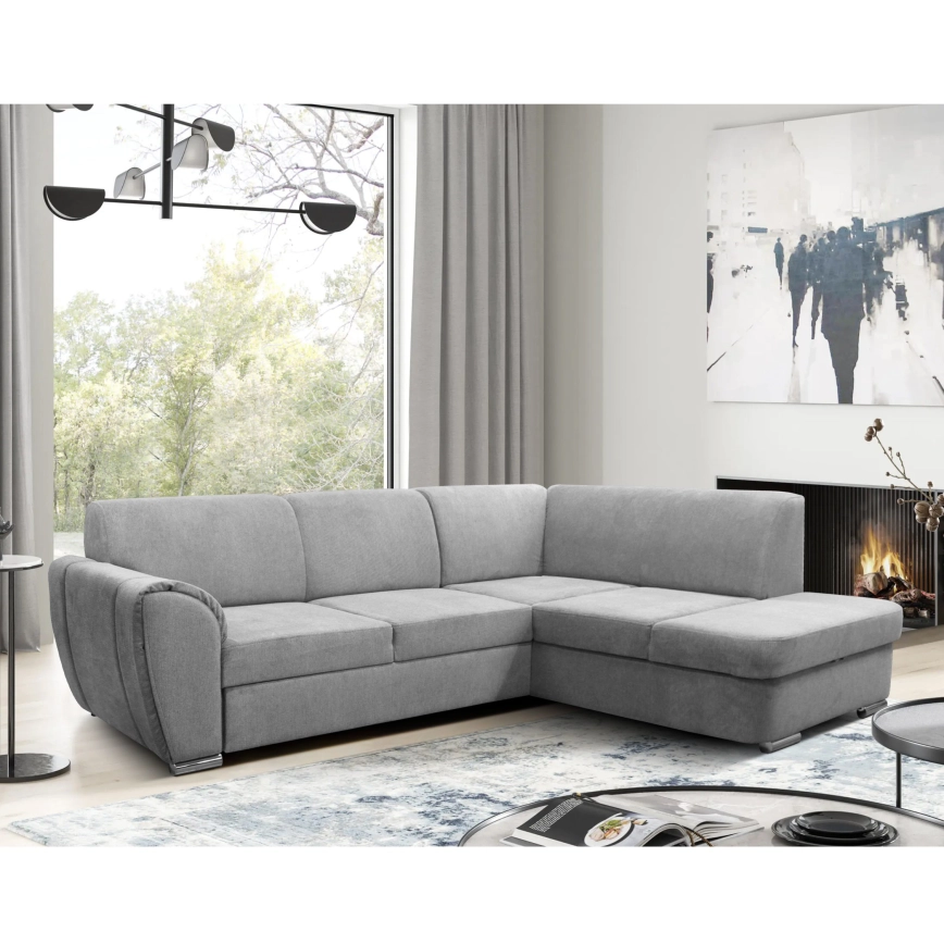 Rozkładany narożnik z pojemnikiem w kształcie L SERPA prawostronny szary