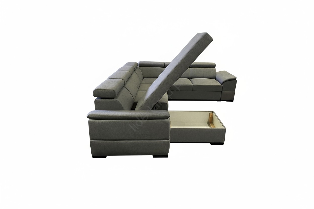 • Rozkładany narożnik z uniwersalnym układem w kształcie litery U i pojemnikiem GRANADA, jasnoszary