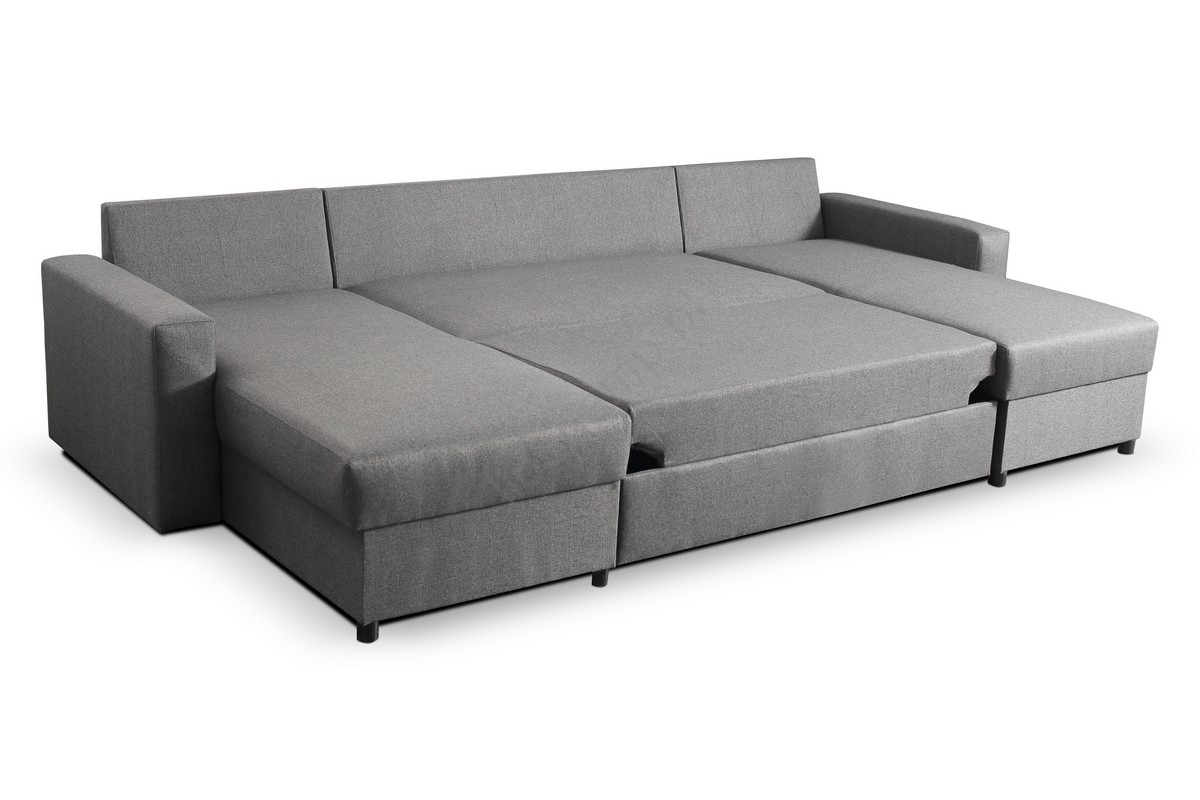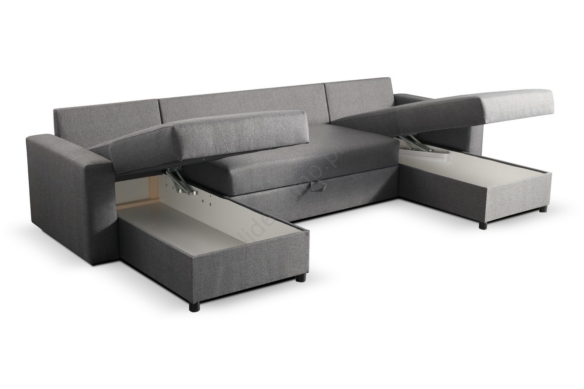 Rozkładany narożnik w kształcie U z funkcją spania i pojemnikiem na pościel JANISE, szary