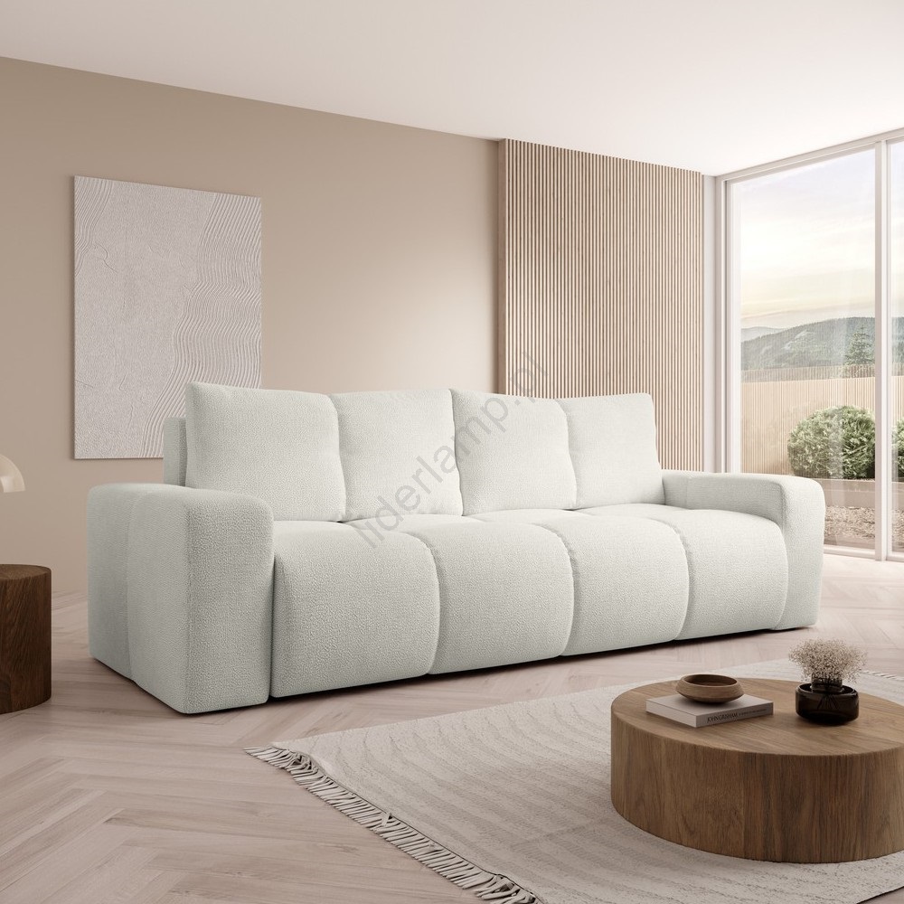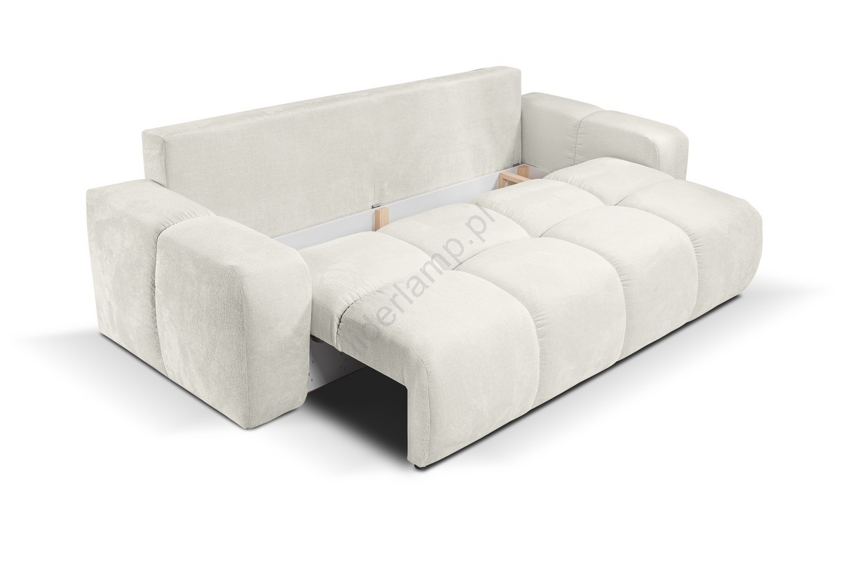 • Rozkładana tapicerowana sofa trzyosobowa z pojemnikiem ALMADA beżowa